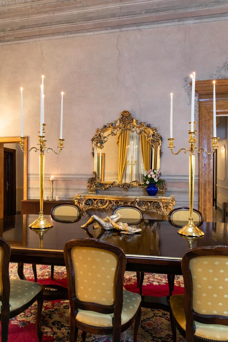 The gallery of Ca’ Vendramin di Santa Fosca captures its identity as both a palace and a boutique hotel. Photographs reveal grand halls with frescoed ceilings, intimate rooms dressed in brocade, and chandeliers that shimmer above polished marble floors.
